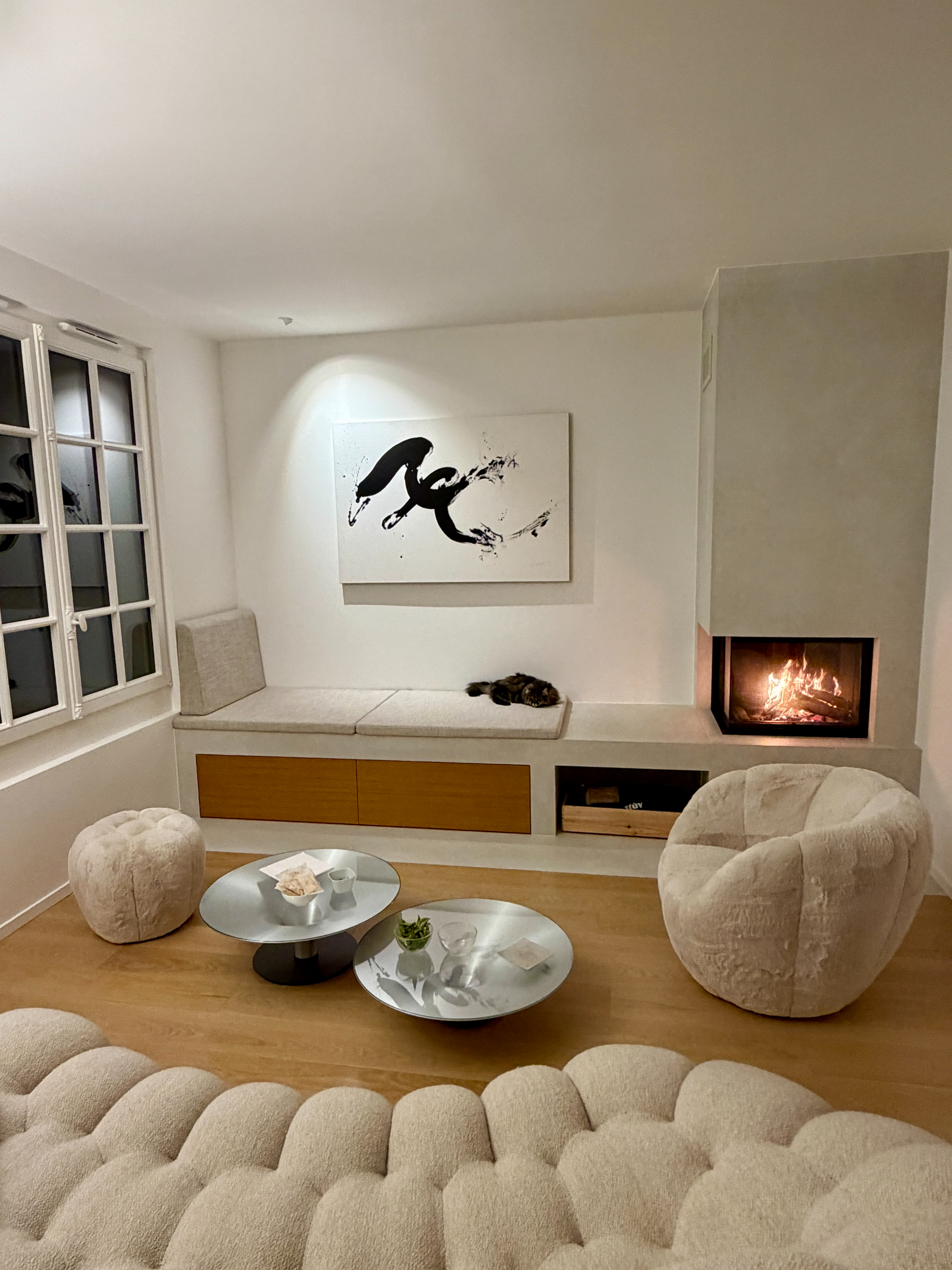 À l’intérieur, l’intention était claire : ouvrir, aérer. Les cloisons sont tombées pour laisser place à la lumière et à la fluidité, tout en préservant les têtes de murs et amorces, fragments de la mémoire du lieu.